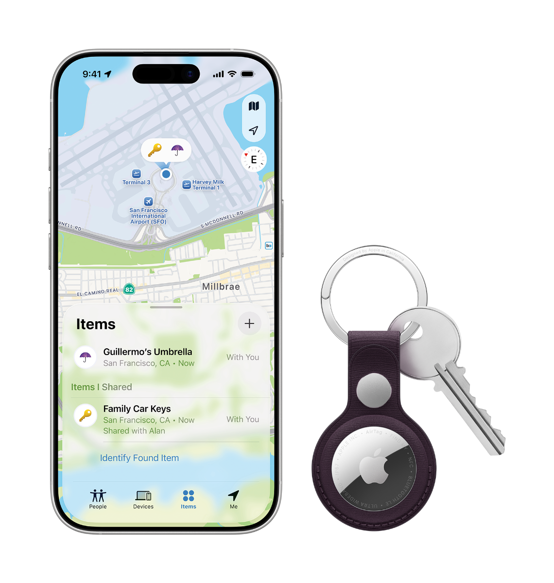 - 1Lyginant su ankstesnės kartos „AirTag”. Išplėstas „Precision Finding” veikia su „AirTag” (2-os kartos), susietu su „iPhone Air” arba „iPhone 15" ar naujesniu modeliu (išskyrus „iPhone 16e”); prieinamumas priklauso nuo regiono.