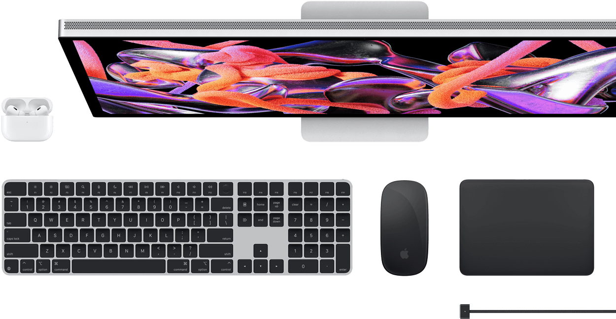„Touch ID“: „Magic Keyboard“ su „Touch ID“ pridedama prie „iMac“ (M4) sistemų su 10 branduolių GPU, „iMac“ (M3) sistemų su 10 branduolių GPU ir „iMac“ (M1) sistemų su 8 branduolių GPU. Tai pasirinktinė „iMac“ (M3) sistemų su 8 branduolių GPU ir „iMac“ (M1) sistemų su 7 branduolių GPU įranga.