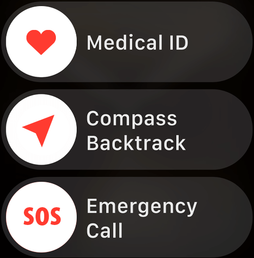 Greitosios pagalbos SOS: greitosios pagalbos SOS funkcijai reikalingas mobilusis ryšys arba skambučių per „Wi-Fi“ funkcija su interneto ryšiu iš „Apple Watch“ arba netoliese esančio „iPhone“.
